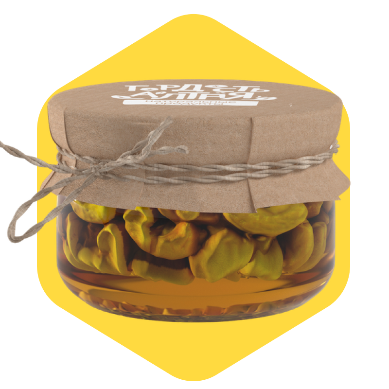 Кешью в цветочном мёде — это натуральный десерт премиум-категории, в составе которого только два ингредиента: цельные отборные орехи кешью и натуральный цветочный мёд из Алтайского края. Продукт сочетает в себе мягкую, обволакивающую сладость цветущего цветочного нектара и характерную ореховую маслянистость кешью. Кешью — один из самых нежных орехов по вкусу и структуре. В сочетании с мёдом он становится ещё более мягким, почти тающим, но при этом сохраняет хруст и плотность. Мёд не кипятится, не пастеризуется и не подвергается перегреву, что позволяет сохранить его живые ферменты, антиоксиданты и природные фитокомпоненты.
